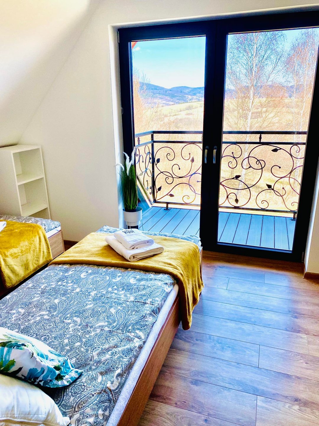 Szum pobliskiego lasu i panoramę gór można podziwiać z obszernego tarasu lub balkonów popijając świeżą kawe.